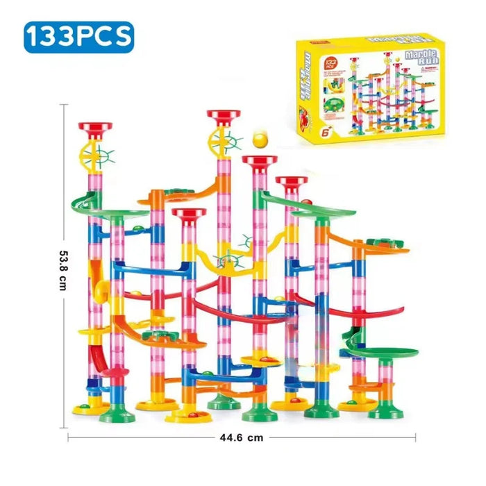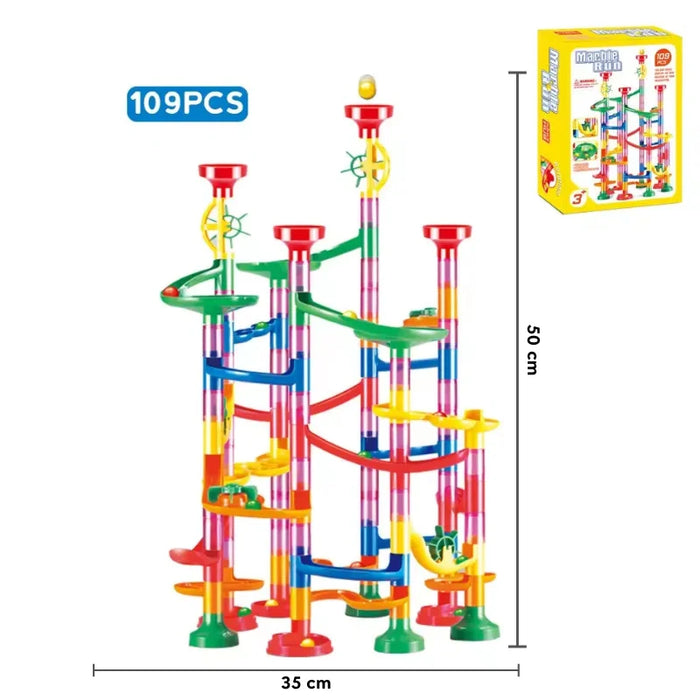 Blocos de Montar de Pista Educativa Criativa e Divertida com Bolinhas transforma a imaginação infantil em incríveis pistas de corrida, enquanto ensina conceitos de física de forma divertida.