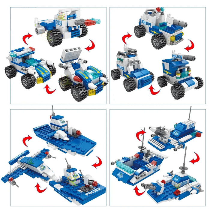 O Blocos de Montar Missão Policial Caminhão 8 em 1 com Robô e Avião transforma brincadeiras comuns em emocionantes missões de resgate e defesa, estimulando a criatividade e o pensamento estratégico dos pequenos!