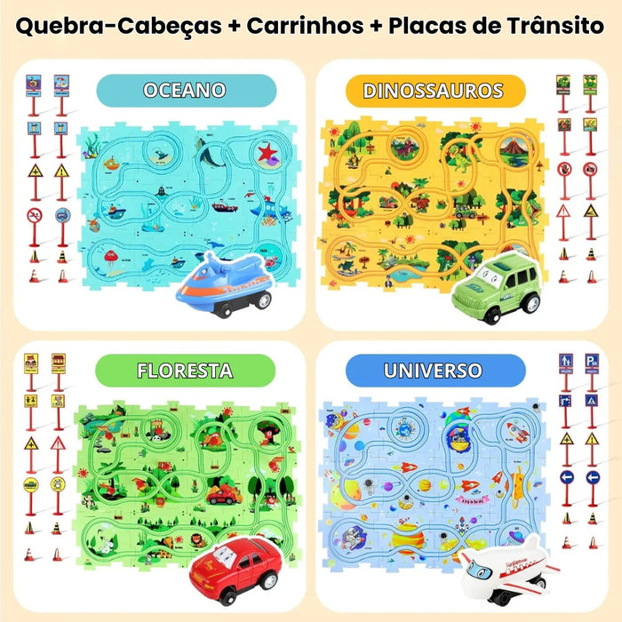 - 12 Peças de Quebra-cabeça: Formam a base da pista de corrida.