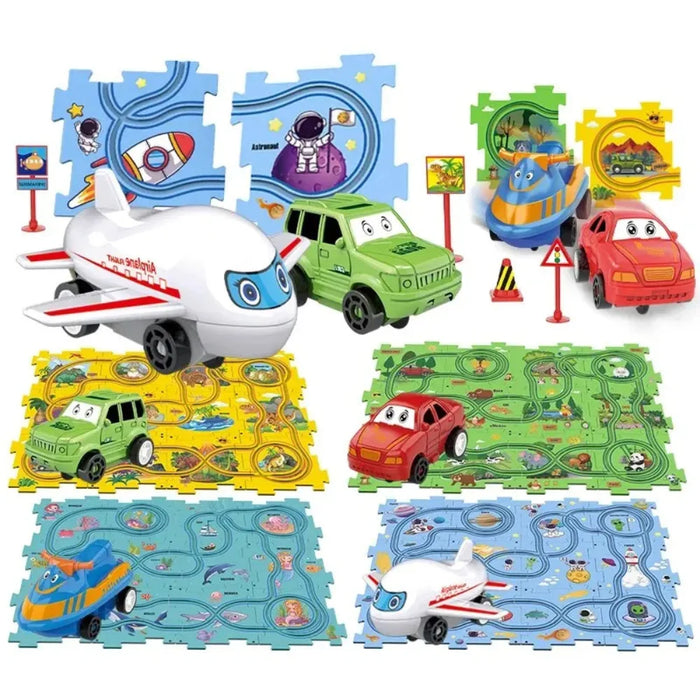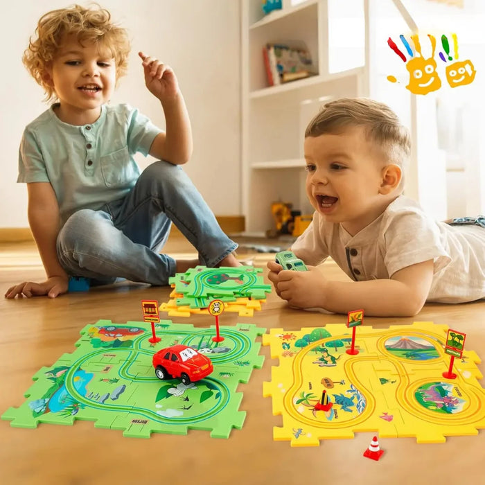 Combinando quebra-cabeça e pista de corrida, seu filho melhora a coordenação olho-mão brincando.