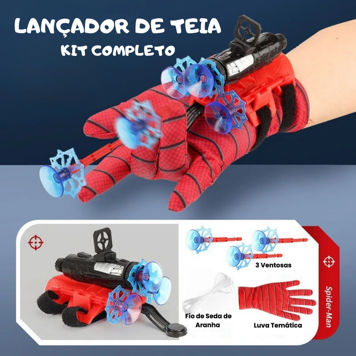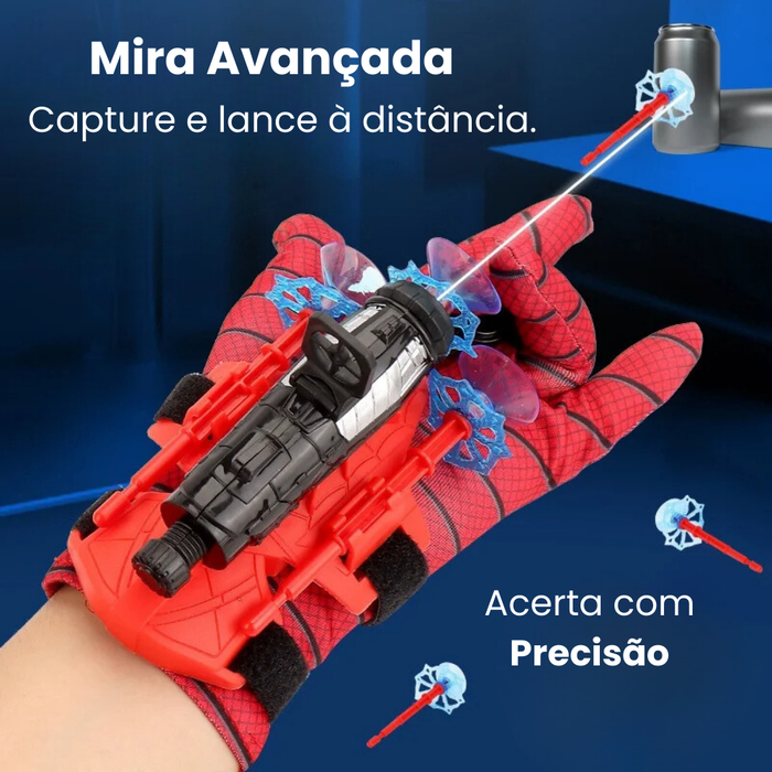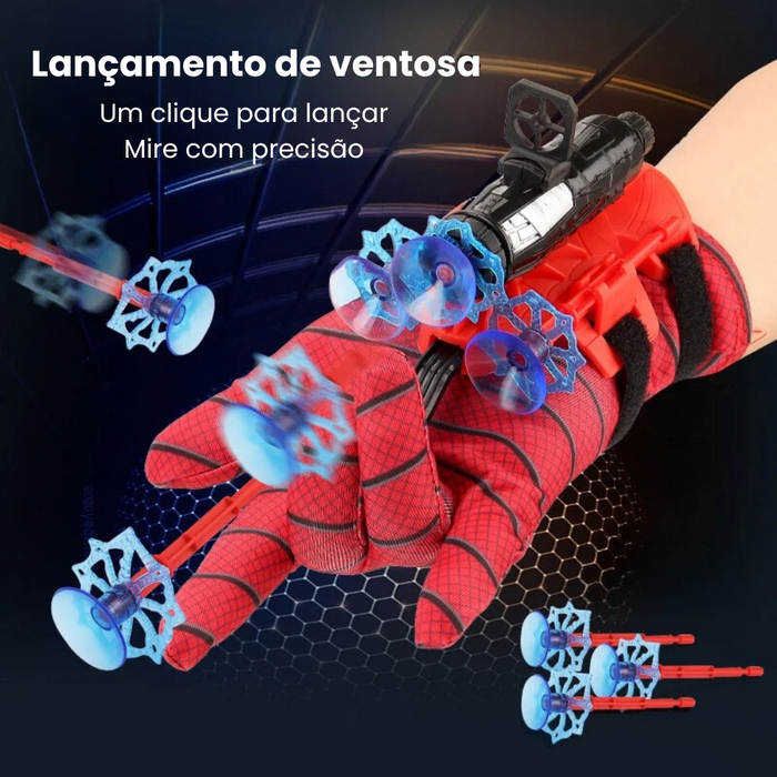 Lançador que simula teias e ventosas para maior diversão.