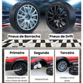- Pneus são intercambiáveis? Sim, escolha entre pneus de borracha para velocidade e pneus de drift para manobras.