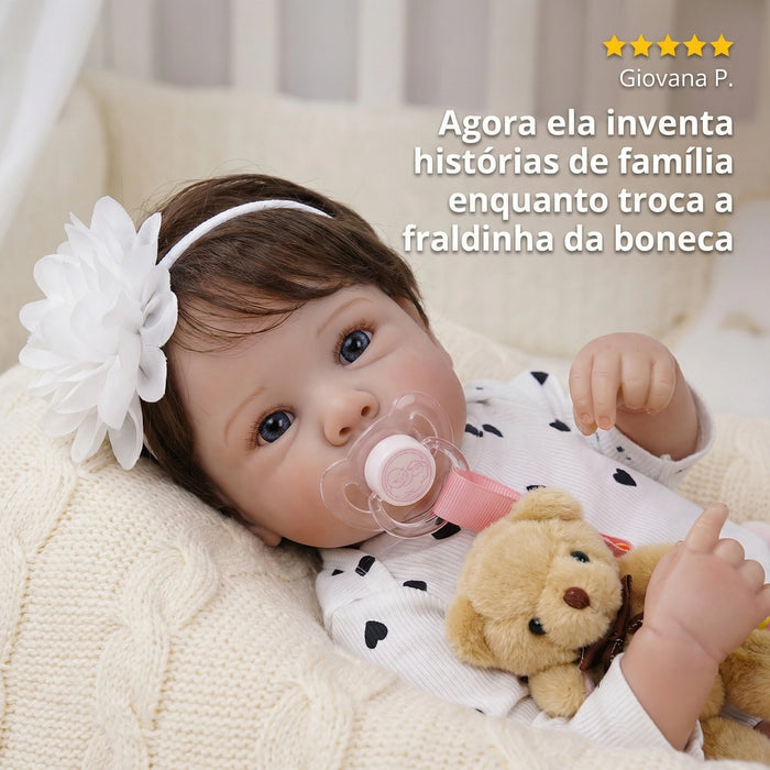 - A Boneca Reborn pode tomar banho? Sim, é totalmente feita de silicone e resistente à água para momentos de banho divertidos.