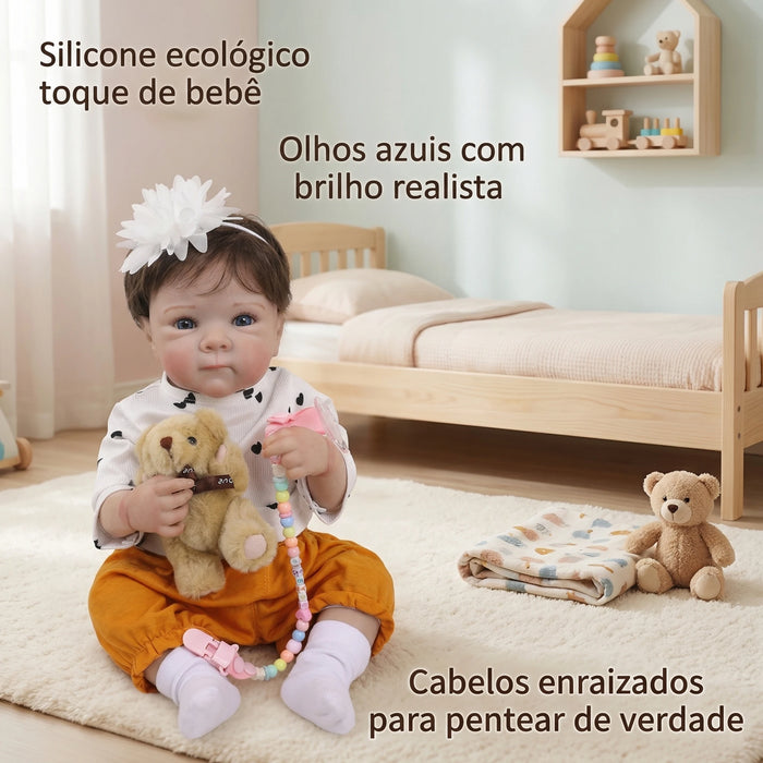 Boneca Reborn Bebê Bianca Cabelos Enraizados e Olhos Azuis Hipnotizantes transforma brincadeiras em momentos de ternura e aprendizagem. Feita para encantar e inspirar, esta boneca é um presente único que cria laços especiais com os pequenos.