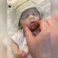 Arindolê Brinquedos bebe Reborn dormindo com roupa verde detalhe boca flexível e pele realista boneca reborn realista