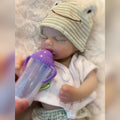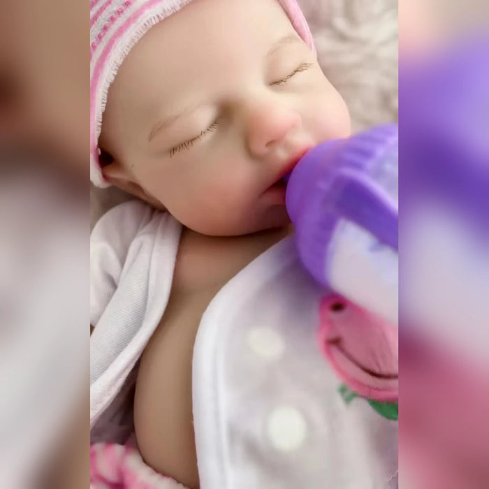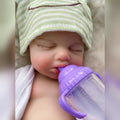 Arindolê Brinquedos bebe Reborn Larissa dormindo com mamadeira roxa, boneca reborn realista que acalma e estimula cuidado