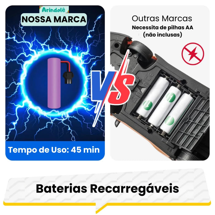 - Bateria Recarregável - 800mAh para até 45 minutos de diversão.